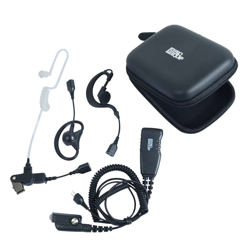 4 in one headset för Icom 14-pins tillbehörskontakt. Headsetet har mikrofon med sändknapp på kabeln. Kabeln har en 2 stiftskontakt som passar direkt i Peltorheadset. Medföljer 3 st olika lyssningsalternativ (luftslang, D ring eller C ring)